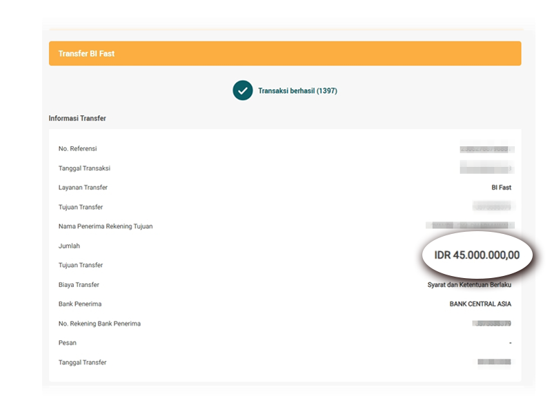 Berikut bukti struk pengiriman dana yang telah dikirim ke rekening member