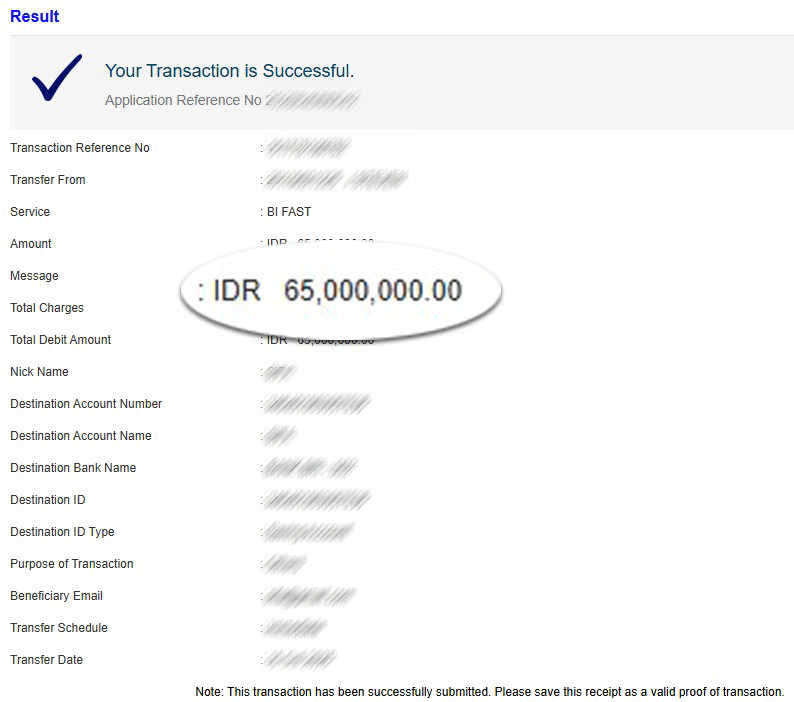 Berikut bukti struk pengiriman dana yang telah dikirim ke rekening member